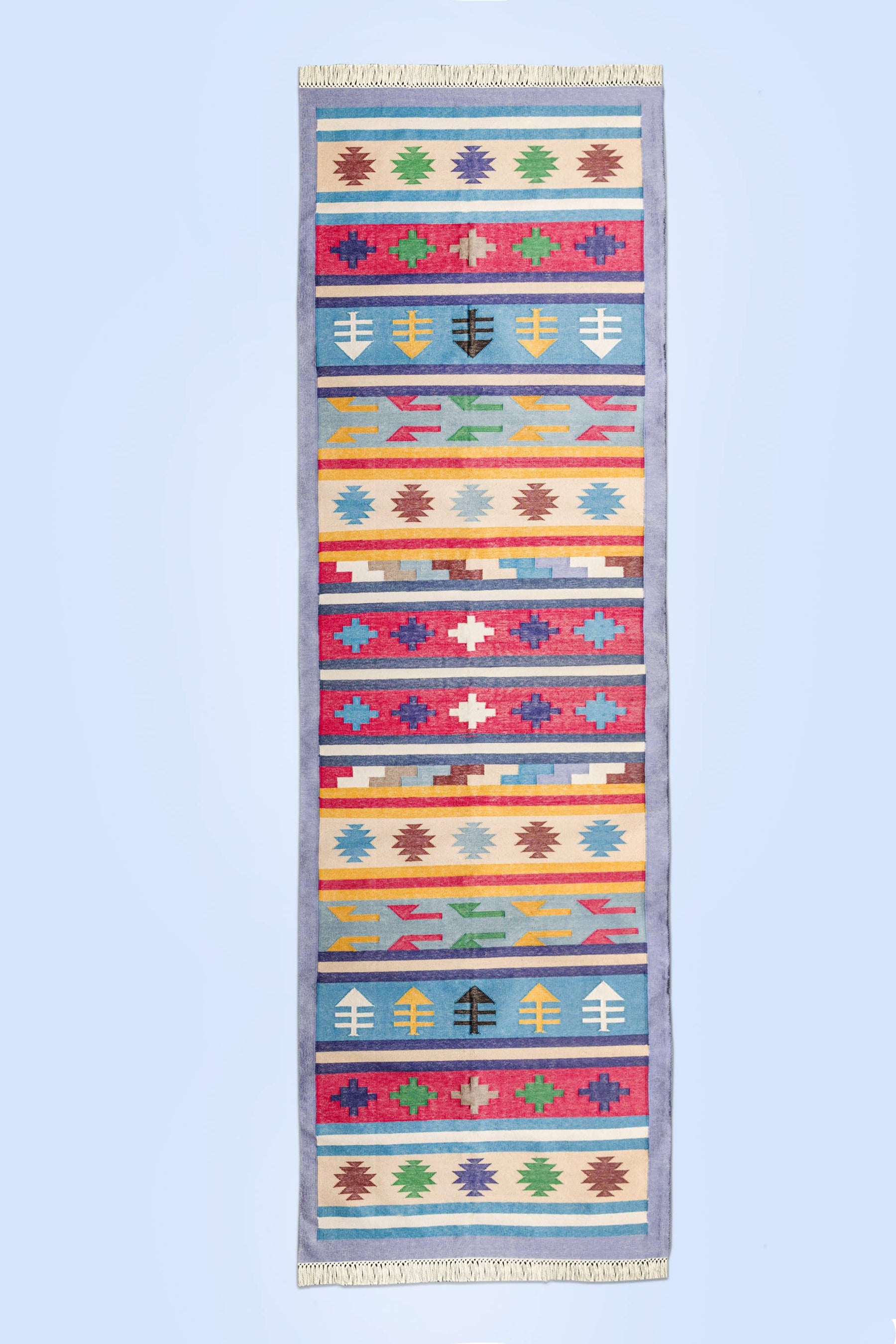 Measurements: 2.5' W x 9' L Materials: Cotton Colors: Multicolored Origin: Responsibly made and sustainably sourced from India Work of art: Each handcrafted piece is unique, revealing the beauty of natural materials and the artisan’s artistry Care: Spot clean only