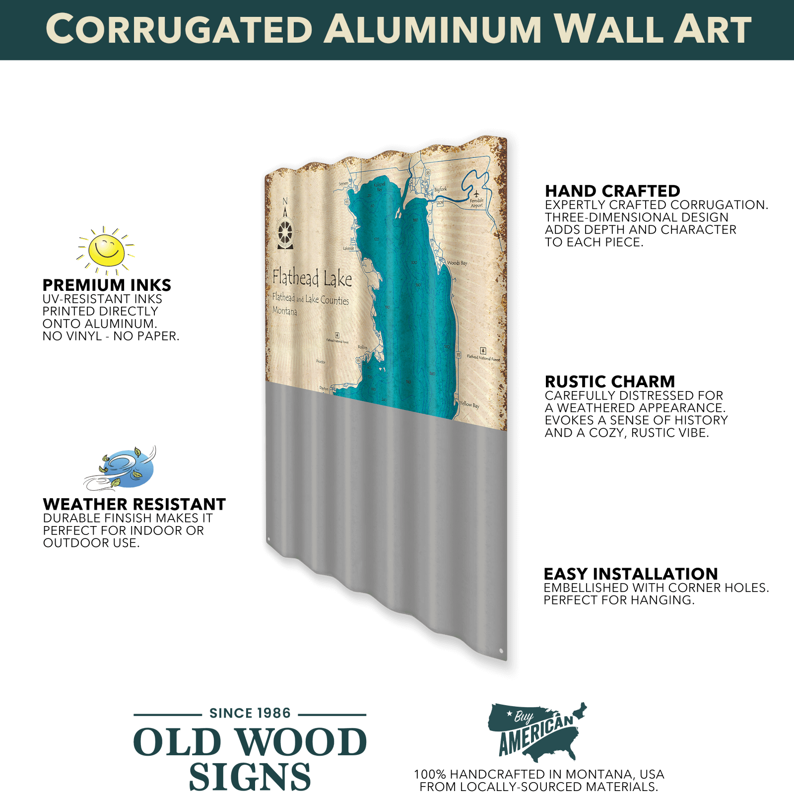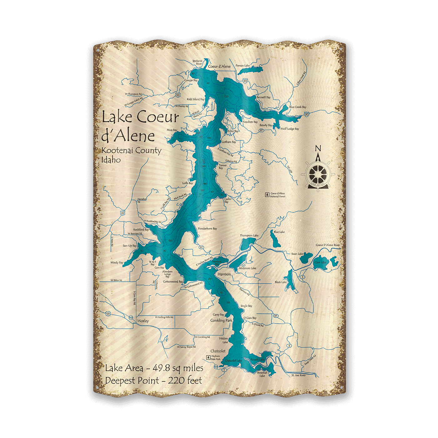 Lake Coeur d'Alene, Idaho - Corrugated Metal Wall Art: Corrugated Aluminum / 22.25" x 31.5"