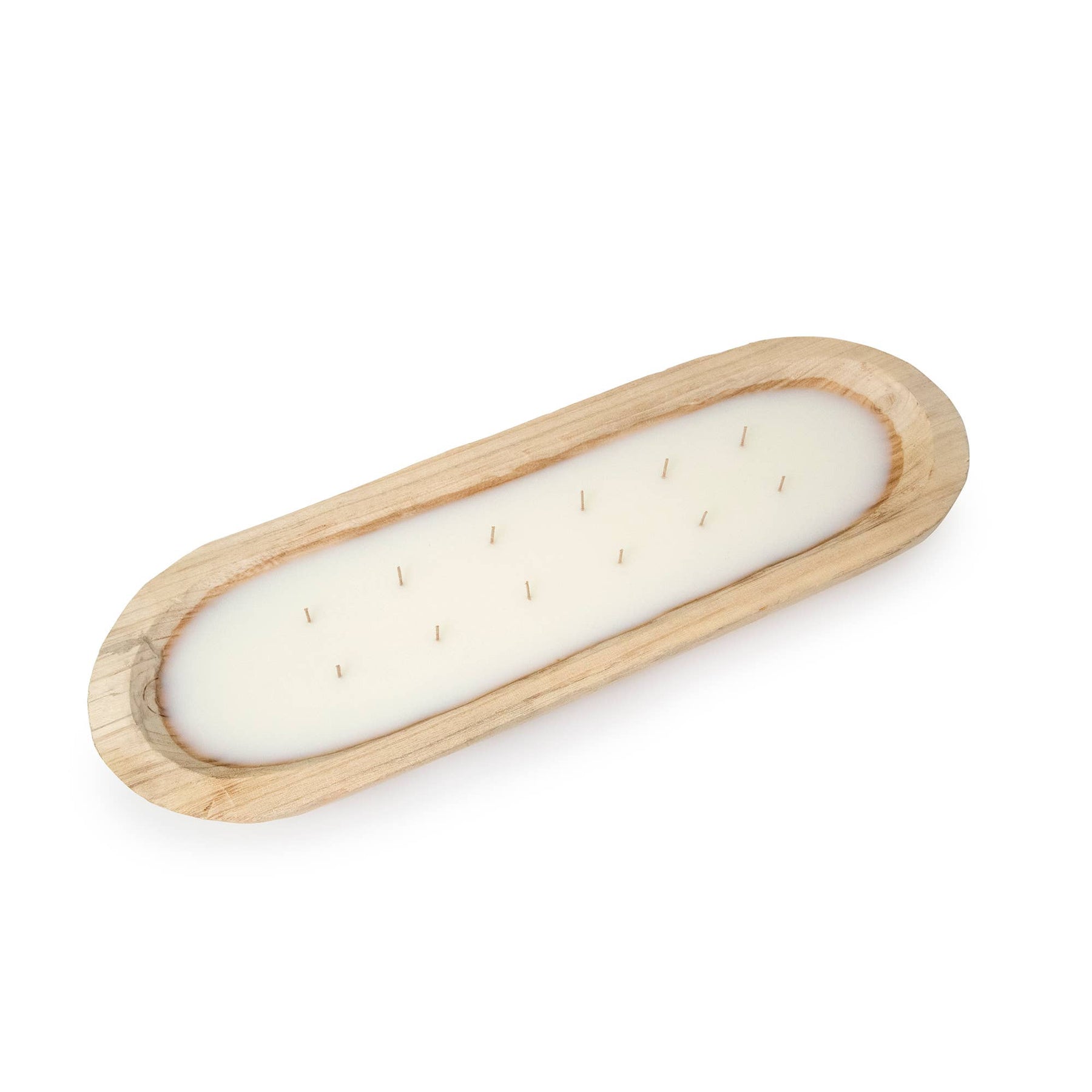Meta Description: This stunning candle features a hand-carved Paulownia wood tray filled with soy wax and subtle palo santo fragrance. The spacious 25" × 9" × 3" vessel creates a statement centerpiece while offering a gentle, earthy aroma. Each piece showcases the natural beauty and unique characteristics of the wood.